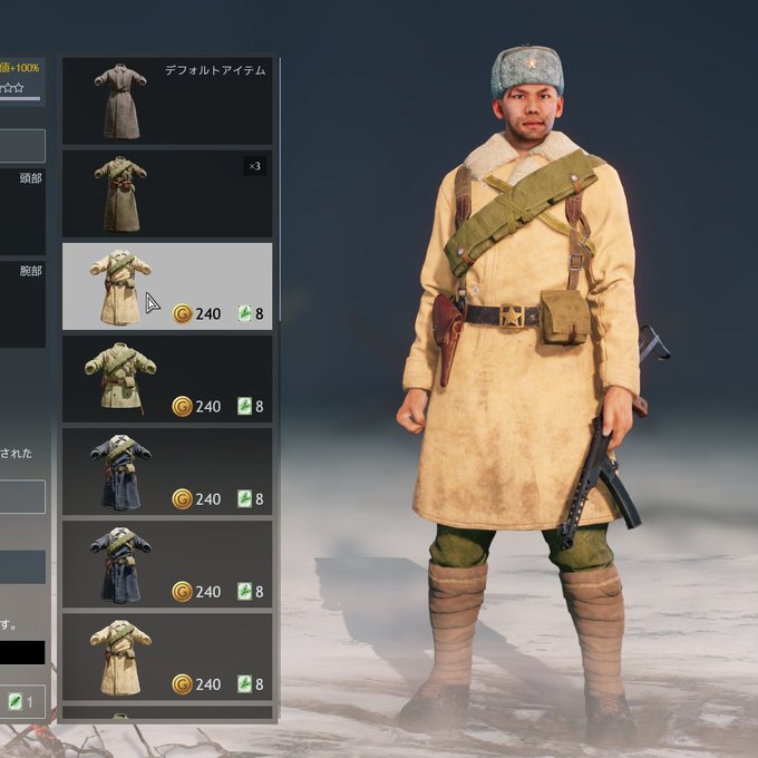 シネーリの陰に薄れるかもしれないけど独ソ戦で使われたコートである。シープスキンで色は白色からクリーム色で、シネーリより短いのが特徴である。戦車兵や政治将校のイメージが強いかもしれない