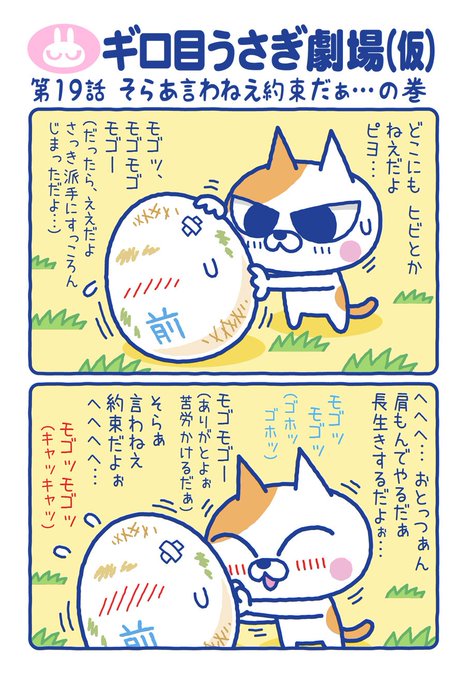 ピョン兄ちゃん、お腹すいたよお …弟のタンパンよお、腹がへったのかあ …うん、とってもすいてるんだあ …そうかあ、そんなにすいてるのかあ。あの〜うさぎさん!ギロ目のうさぎさん! ……うさぎさん! ……おい、うさぎ!