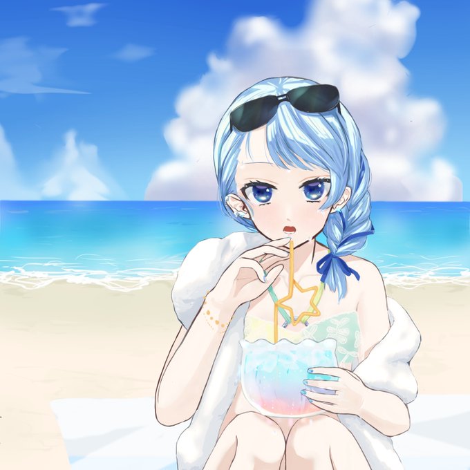 海でも可愛いすいちゃんを描きました✌️ 文字なしは下にあります #ほしまちぎゃらりー