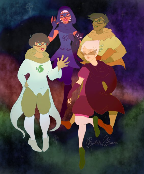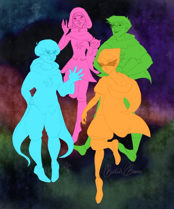 alright I colored it, I kinda liked the color blocked so Im posting that too lol #homestuck #alphakids #roxylalonde #jakeenglish #janecrocker #dirkstrider