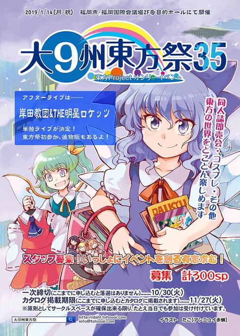 1月14日におこなわれる大九州東方祭35に豚乙女サークル参加します。冬コミ新譜、旧譜、グッズなど持っていくので九州の民遊びに来てね🐷カタログにスペース載ってない隠れキャラですが岸田教団&THE明星ロケッツの近くにいると思う⭐️