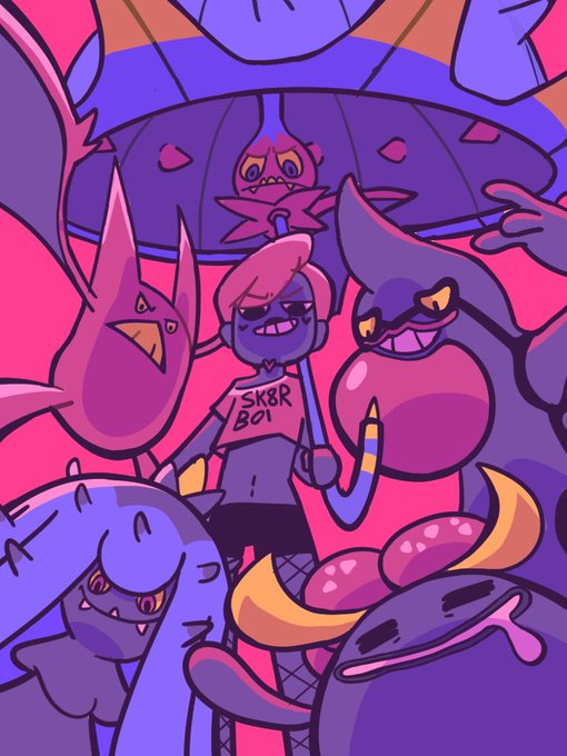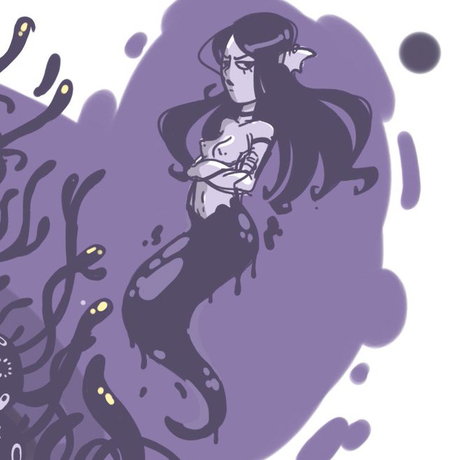 Finally drew my one (1) horny character with @heyitscorinth in Drawpile today! She’s a siren with a goth eel sister and a freaky cosmic horror best friend