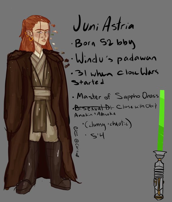 to dead so here’s my oc juni and her boyfr... friend obi wan as padawans
