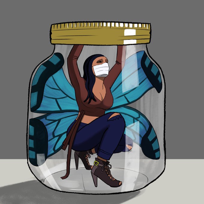 “Social Butterfly in Captivity”. I hope my fellow extroverts are finding ways to take care of themselves during this panini.