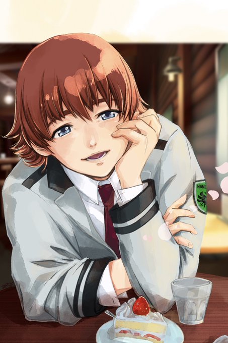 遊くんお誕生日おめでとう! 今年はケーキもあって豪華にお祝いできてハッピー😭✨ これは学校帰りの遊くんと初めて喫茶店に寄ったときのやつ。(カフェ背景はお借りしました) #音成遊生誕祭2022