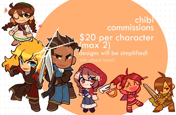 i'm opening up 8 slots for some quick chibi commissions; prices are in USD!