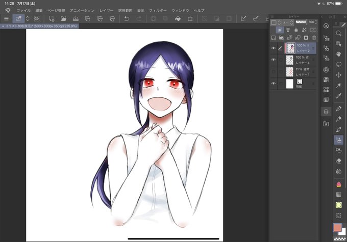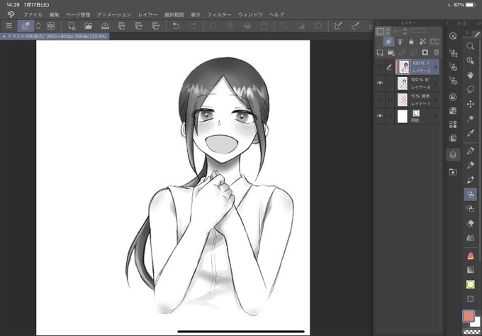 モノクロで描いてオーバーレイで色付けた 良さげ