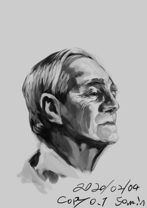 んー、ちと首の角度が違うかな。最初のとらえ方だな。 #模写 #copy #sketch #lessonface https://t.co/403GIS8y0U