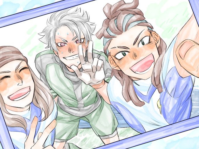 #イナイレいつでも真剣お絵描き60分一本勝負 お題 自撮り 時間 60分+60分 練習中に自撮りするアスイレ達です🤳