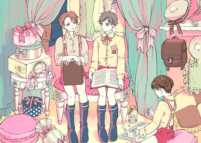 じつはたメインにイラスト本と缶バッジ配布します。表紙を描かせていただいた致死さんのじつはた小説本(https://t.co/g54cacwsbM)も委託しますのでよろしくお願いします❤