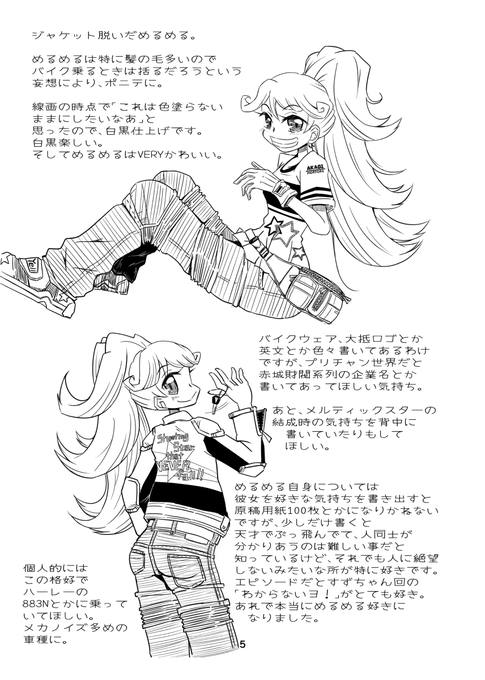プリチャン絵、見ていただけてVERYうれしいです。ありがてぇ🥲 折角なので一番新しい、先日のAMGモータースの新刊の「プリチャンのメンツにバイクウェア着せる本」の絵も何点かUPしたり。 テキスト込みの完全版のサンプルをUPするのは初めてかも。 バイク濃度高めですが根っこはプリチャン本ですw https://t.co/VbPhLSuBQs
