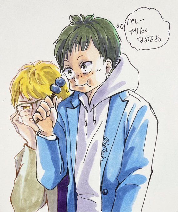 観戦中の月山ちゃん。 帰ったらバレーやろうってつっきを誘う。 ふわちゃんがコピックの色を載せてたのが興味深かったので真似してみた。違うもんだなあ。