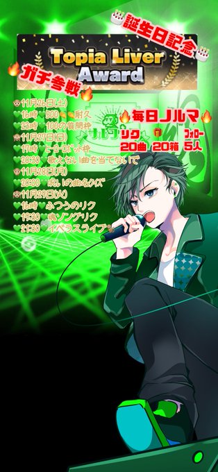 「Topia Liver Aword」初日 11月26日(土) 16時からは、「500ぱちぱちいただけるまで終われない枠」をやります!