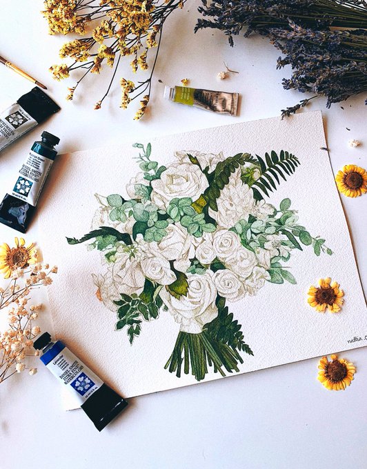 2รูปนี้ฝึกวาดค่ะ อยากรับคอมมิชชั่นที่เป็นดอกไม้บ้าง เห็นคนอเมริกันเค้าชอบจ้างวาด ช่อดอกไม้ในวันเเต่งงานกัน กำลังหาหนทางหารายได้เเละได้วาดในสิ่งที่ชอบด้วน ขอพักจากการวาดรูปบ้านปากกาสีดำก่อน 😭