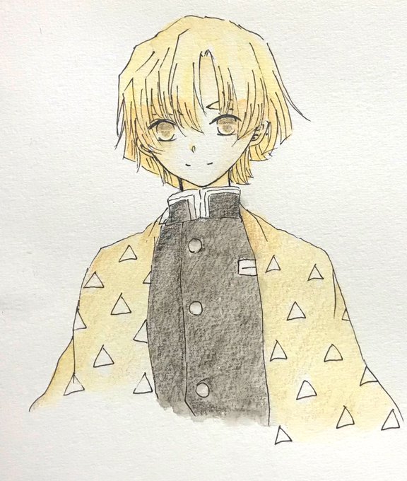 ご友人に送ったイラストを清書、着色しますた。善逸の髪の毛の上手な描き方が知りたい。。