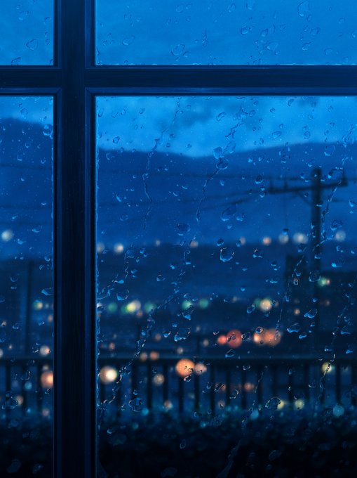 雨の町、描きました。