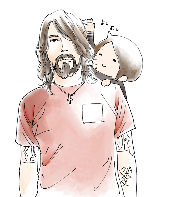 デイヴ・グロールをよしよしする坂本を描きました。 #落書き溜まり場 #イラスト #FooFighters