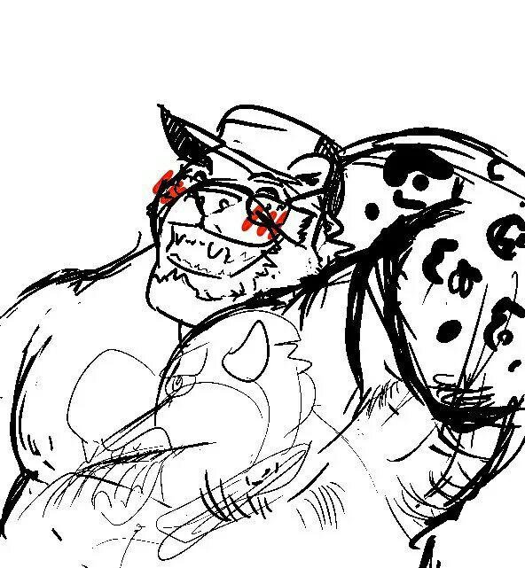 LONG OVERDUE comission for @nolan_fa of his character nolan with mayor lionheart, in some sort of private flexing session