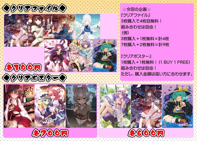 あと、クリアファイルとクリアポスターは原価なんて無視してます。ぶっちゃけ今回だけの予定。もうね…押し入れいっぱーいなので、是非よろしくお願いします。