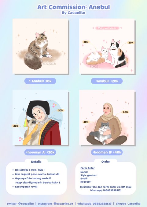 Get yourself drawn in this cute style with only IDR 20k. Please DM to order! ✨