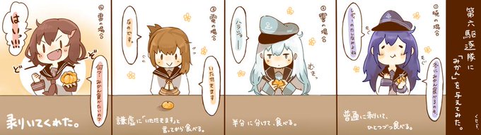 第六駆逐隊に、みかんを与えてみた。 #艦これ版深夜の真剣お絵描き60分一本勝負