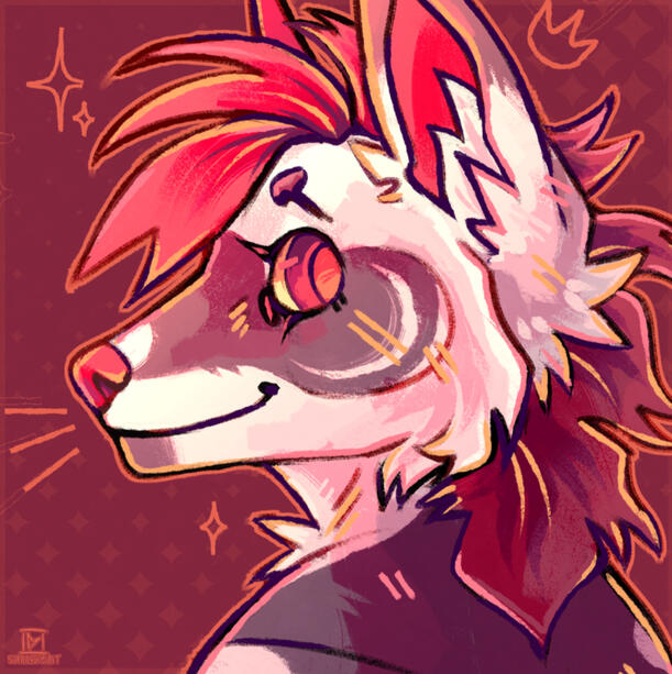 the right side of his face was corrupted by an evil energy that has returned to plague the land, resulting in blackened fur and skin alongside a distorted pupil.