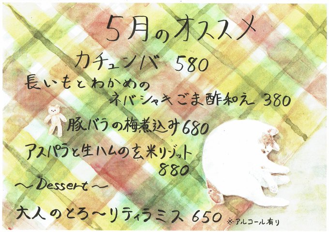 おはようございます! 今月のディナーのオススメメニューです! 本日、ランチ、ディナーともにお席に余裕ございます! お待ちしております。 tel-042-810-8538