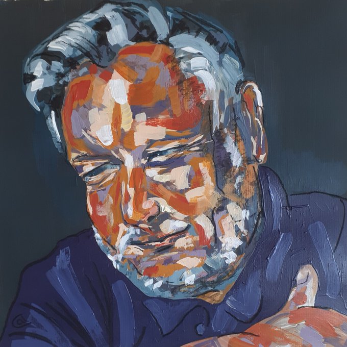 Enjoying taking part in Sky portrait artist of the week with @SkyArts This week's sitter was @rankinphoto My portrait of Rankin is in Acrylic and Charcoal on paper. Looking forward to the next episode on Sunday #myPAOTW #paotw #portrait #mixedmedia #portraitpainting