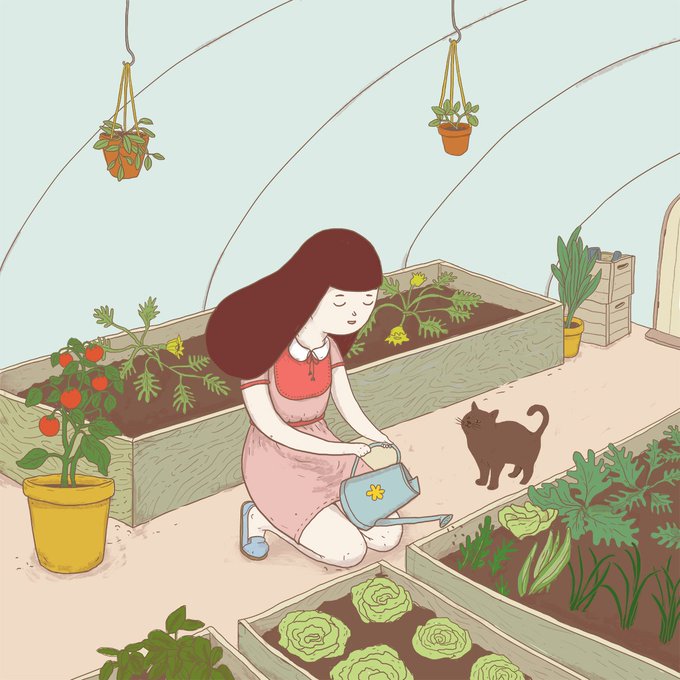 A new little drawing - https://t.co/5snIzxl862 #camellie #illustration #girl #cat #illustration