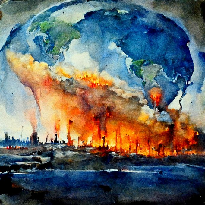@midjourney end of the world in watercolor --hd