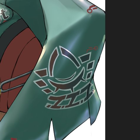 おはよう!やった~!瞼デカール出来た!! …でも無駄に綺麗なの気になる、 経年劣化させてみるわ。 #wip #イラスト
