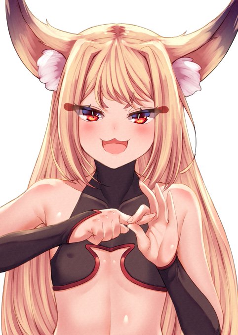 指で輪っか作ってお金をほしがる金髪赤目狐娘です