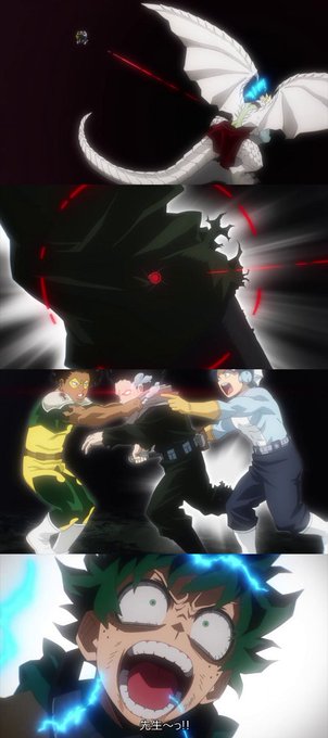 -ion shot of Aizawa, then Deku tried to stop Shigaraki by using Wyoming Smash (which was ruined by the censorship), but it's revealed that Shigaraki was fine and fired the bullet