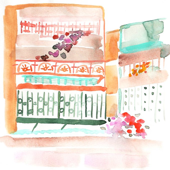 おいしかったものを思い出して、写真を見ながら描いていると、味ももちろんながら、一緒に食べた人たちのことや、そのときの会話までがよみがえり、しばし幸せな気分に浸ります。