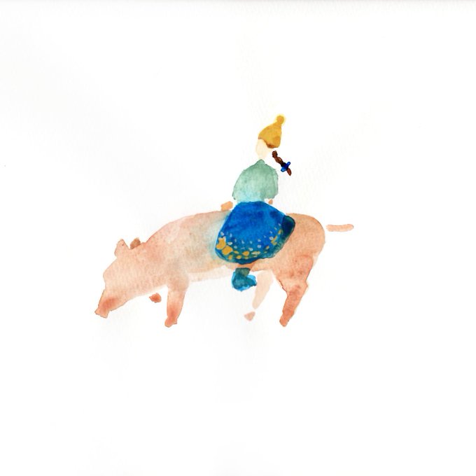 今年から干支を描いてみることに。いのししと、その背中に乗せてもらって散歩する女の子と。