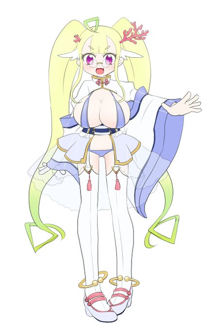 【リクエスト絵】腕で胸寄せちゅりちゃん(要約) せっかくなので趣味全開でセーラー水着で描きました👍