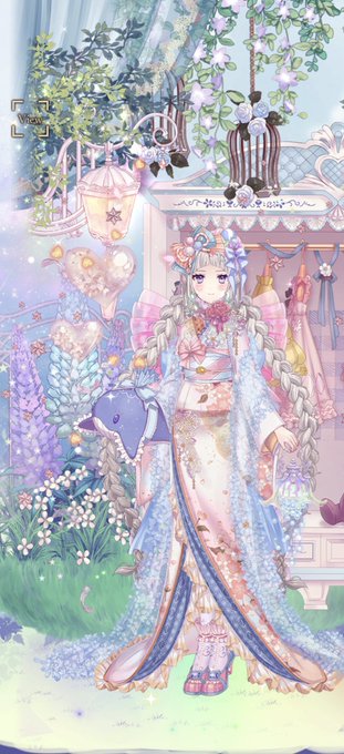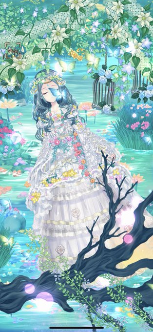 フローラルフェアリーヘアで明るめのファンタジーコーデを組んでみました👼💎✨ ディバドレスだいっすきだったな…(´πωπ`*)レースのふわふわが本当に綺麗✨ 染色の黒と合わせてめちゃくちゃお世話になった…ありがとう♡