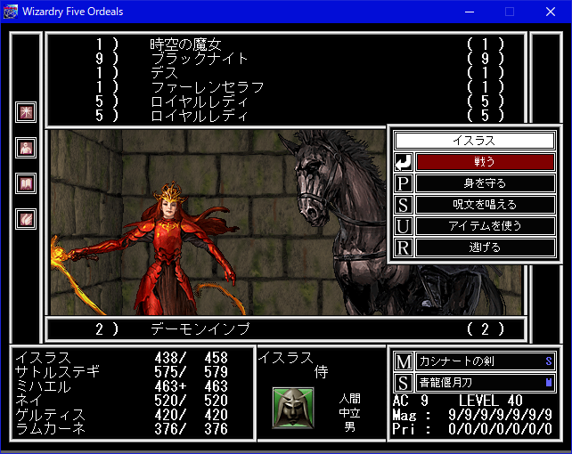 アイテムを集めるゲームだから仕方が無い面もあるとは思うけど、ウィザードリィの侍ってだいたい鎧兜に身を固めた戦国武者になっちゃうんだよね。(画像1枚目)