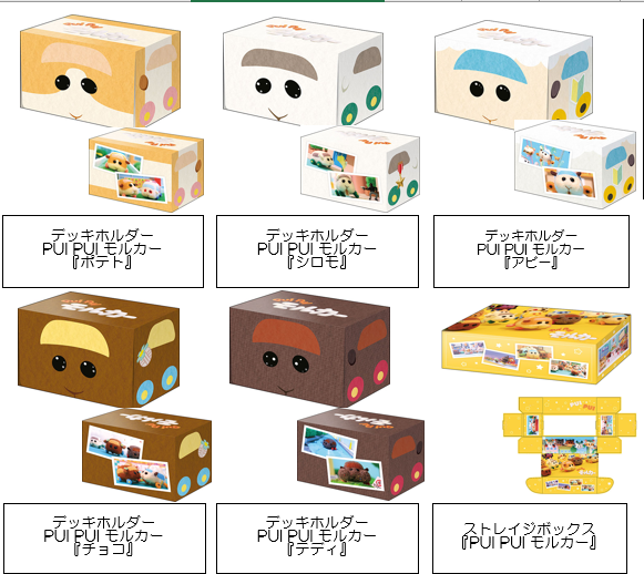 ブシロード様から #PUIPUIモルカー のスリーブ、デッキホルダー、ストレイジボックス、ラバーマットが5/14(金)に発売予定です。 ご予約受け付け中です。宜しくお願い致します。