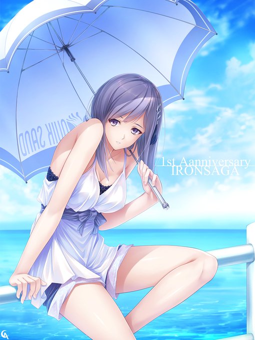 BMが大暴れしている様な世界でも、このタイプの傘は使われてるんだな…。 と言うわけで、かなりの遅れ馳せではありますが、一周年おめでとうございます! (どこかのグッズメーカーさんがこんな感じの傘作ってくれないかなぁ…) #アイサガ #アイアンサーガ