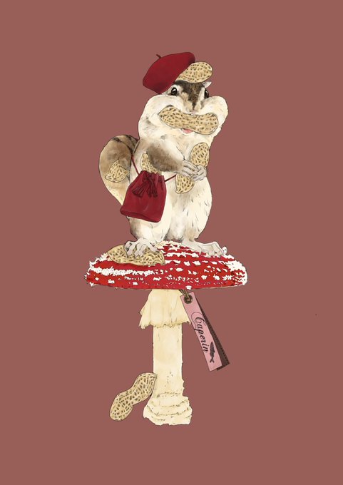 過去作色違い。 #リス #お絵描き #イラスト #ベニテングタケ #絵描きさんと繋がりたい