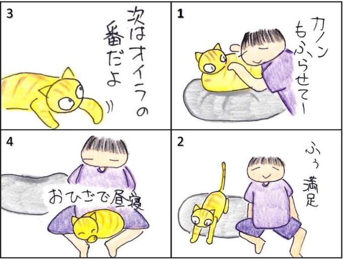 胡坐の中で寝るのが大好きなカノン。モフらせてあげるから代わりに胡坐で昼寝させて、だそうな。ま、かわいいし、Give&Takeということで許そう。