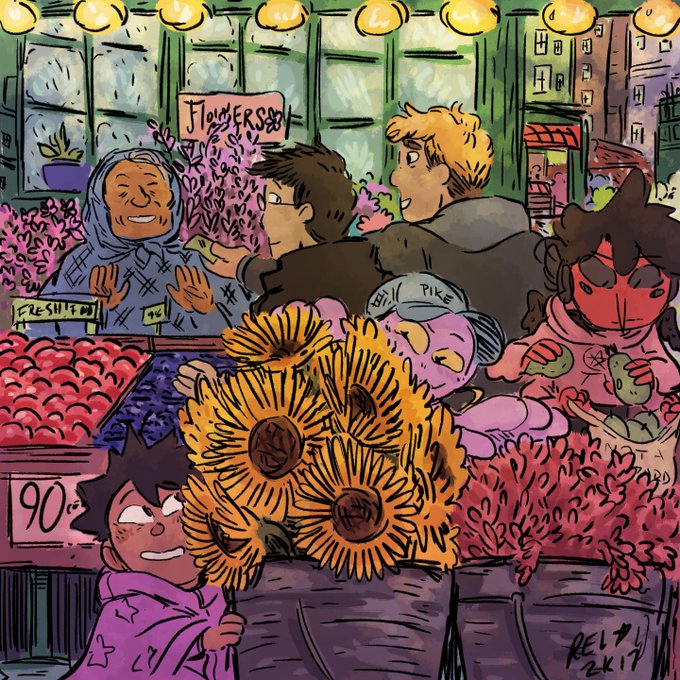 I'm Rel! I'm a nonbinary illustrator working on a webcomic @famspirits and some other upcoming projects! I'm also open for commissions and illustrative/comics work! #PortfolioDay 🐸