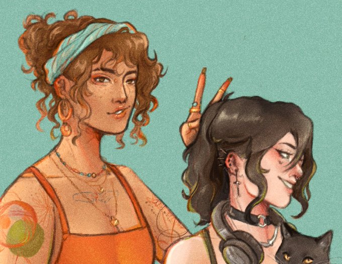 @Toffuwu this is clover and their gf rhea, shes a snarky little fucker who loves music, choreo, and wreaking havok in the general public. contary to her name she is very unlucky in terms of her traumatic life events (sorry) but i love them dearly :-)
