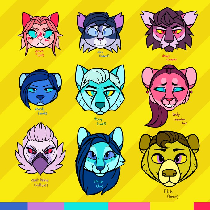 Only going to be using like two or three characters at most in my part for @mysterydrago101's Hung Up MAP, but some quick designs for the whole Ready or Not cast just for fun! :3