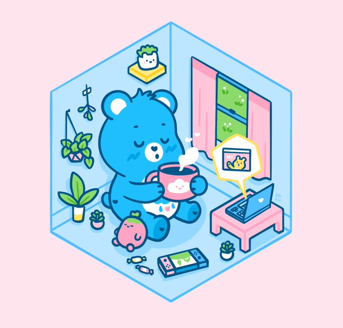 Everybody has sad days ☁️ Good thing Funshine Bear is just a zoom conference call away reminding Grumpy to take a break from #AnimalCrossing, have a cup of tea and water his plants.
