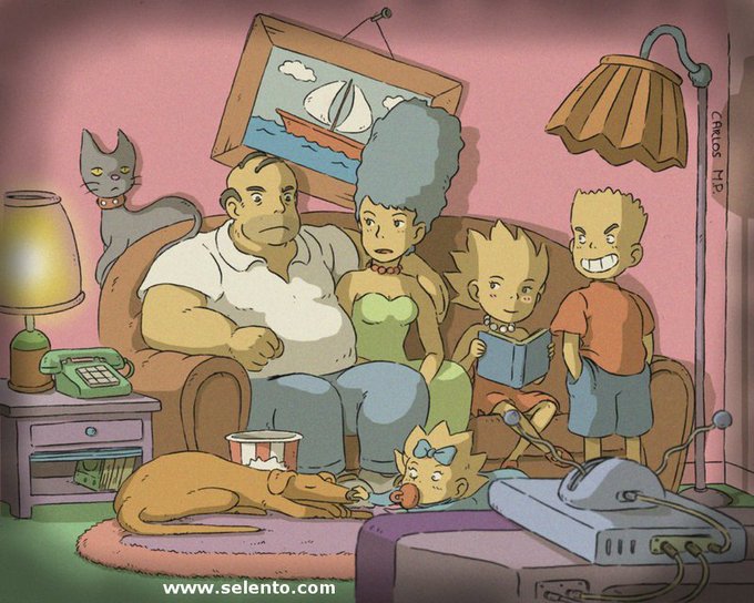 Dibujo de los Simpsons estilo ghibli!Ha salido a la venta un libro ilustrado por mi!Roro el príncipe gato!en amazon!https://t.co/vElRxeybis