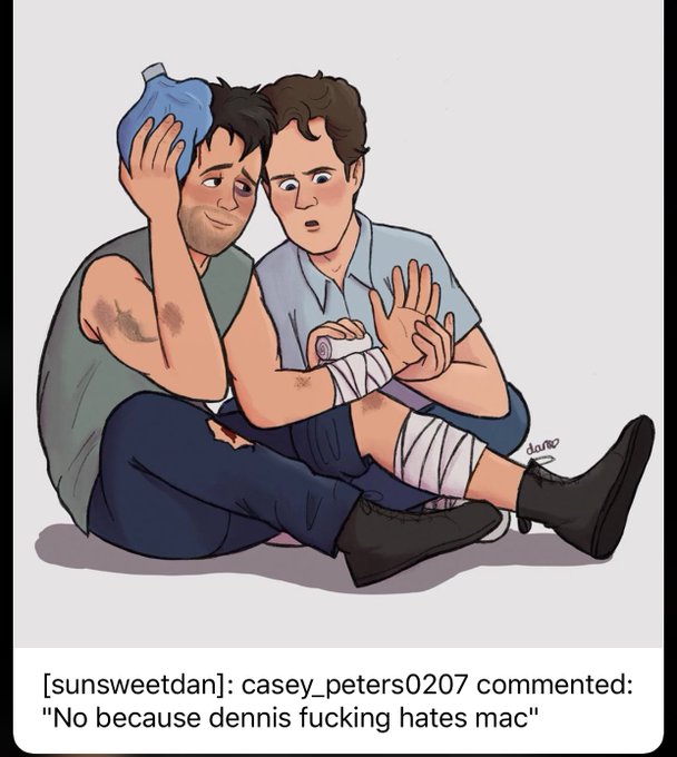 thinking about dennis having to patch up mac after a project badass stunt gone wrong