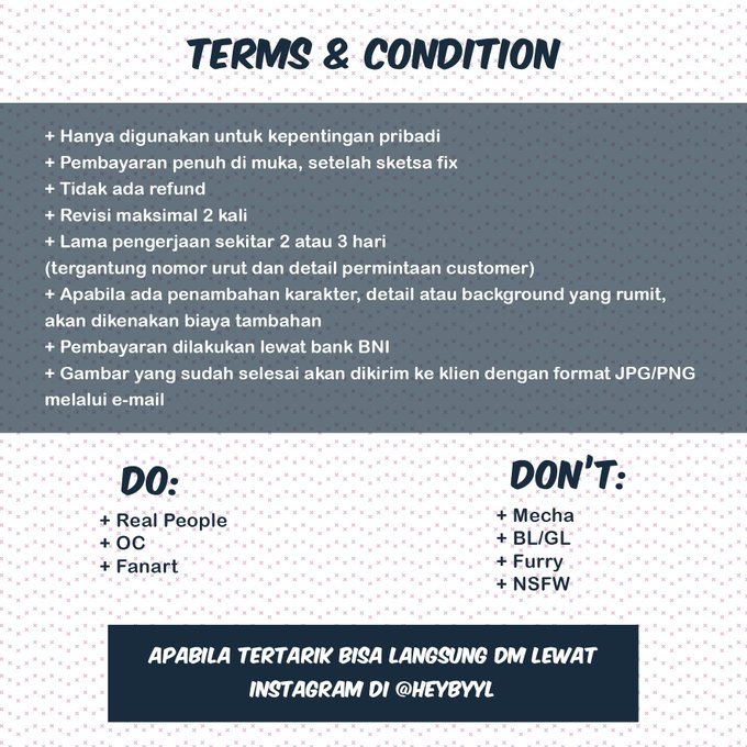 Buat yang nyari kado atau mau satu gambar dengan bias/karakter fiksi favorit, boleh banget pesan ilustrasi ke saya yaa. Bisa langsung DM di instagram @ heybyyl kalau tertarik ❣️❣️