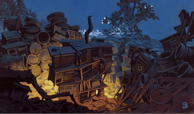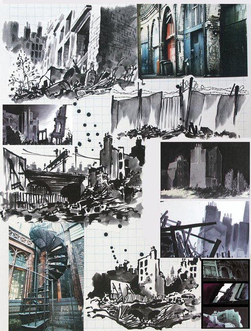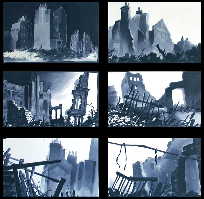 More unproduced CATS animation history: When Hans Bacher (later production designer of MULAN) worked on the film in the early-90s, the idea was to make a hybrid film w/ 2d animation against miniature model sets. Here are some of his concepts, followed by the model set tests.